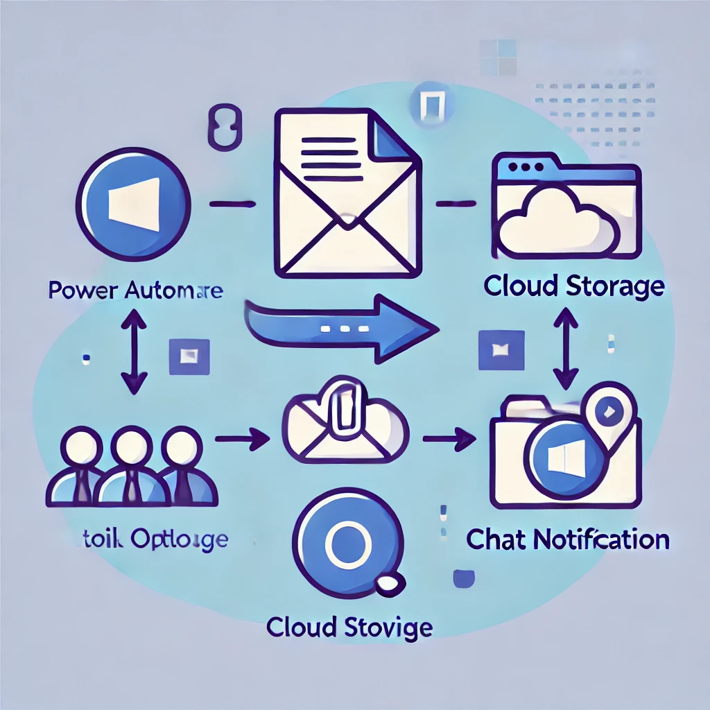 新しいメールを受信 → 添付ファイルをOneDriveに保存 → Teamsに通知